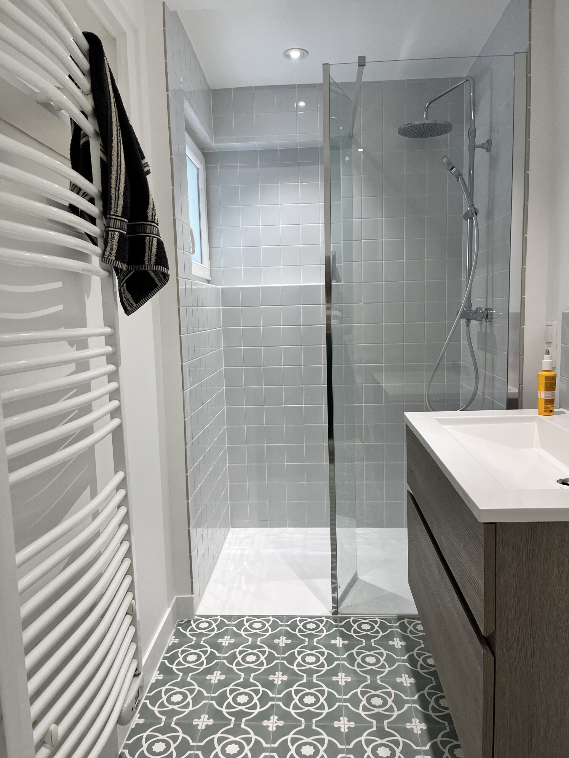 Rénovation de la salle d’eau, remplacement des revêtements intérieurs.